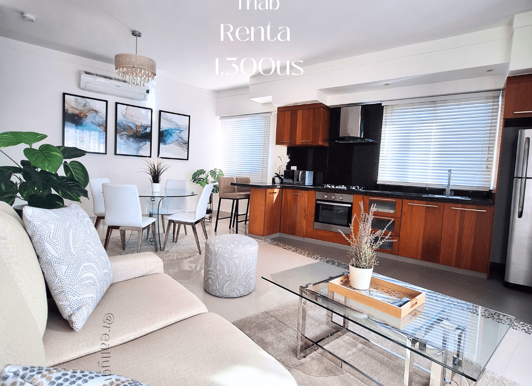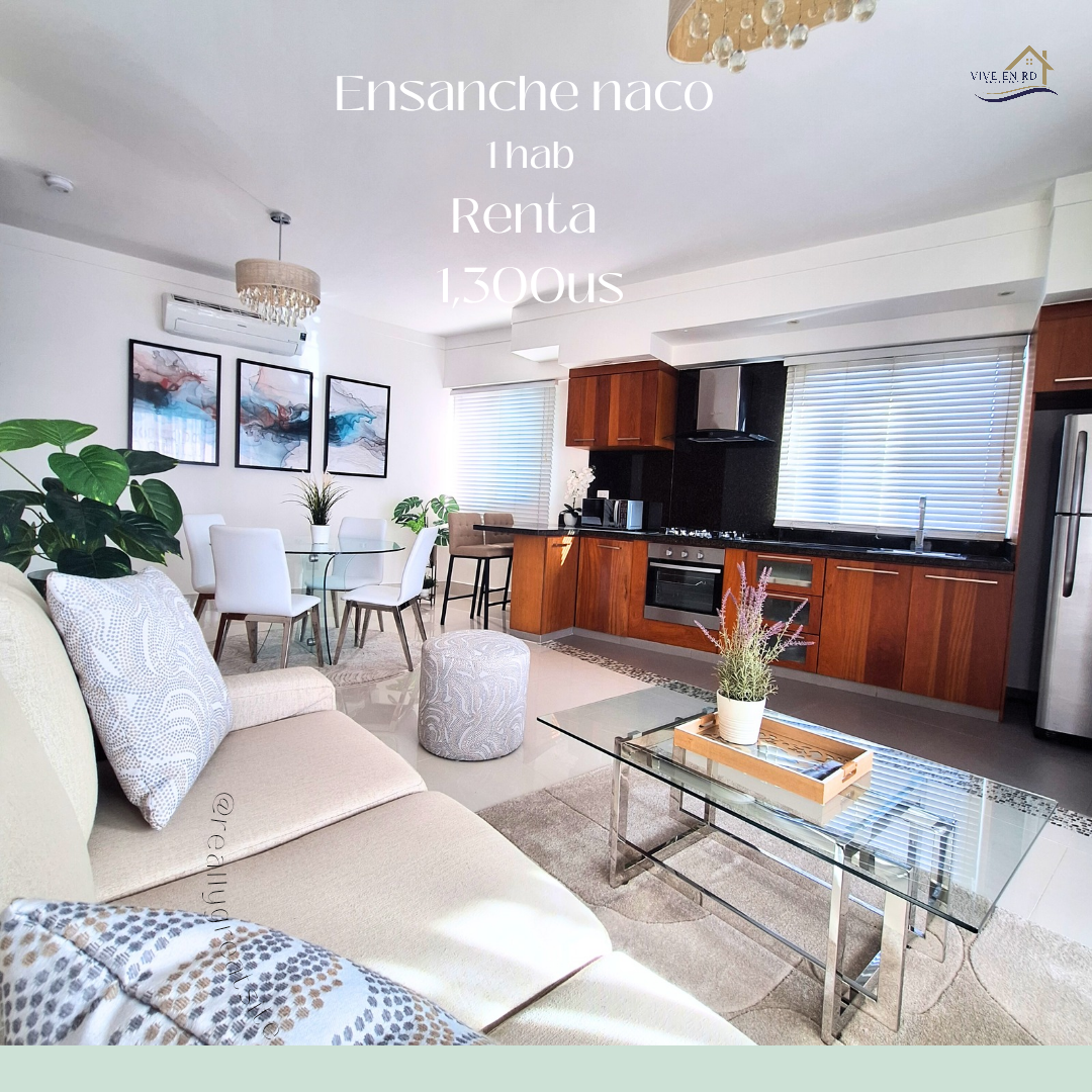 Apartamento en Renta finamente amueblado de 1 habitación en una moderna torre y en la exclusiva zona de Naco en el Distrito Nacional.